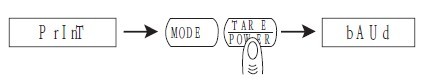 第1步 按下TARE鍵,再按MODE鍵,同時放開兩個鍵,天平顯示“P R INT ”。