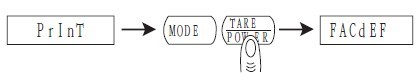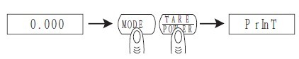 第1步 按下TARE鍵,再按MODE鍵,同時放開兩個鍵,天平顯示“PRINT ”。