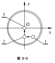 L2,使水準(zhǔn)儀中的氣泡位于圓圈線的中央位置。具體調(diào)節(jié)方法是:旋轉(zhuǎn)調(diào)水平螺釘?shù)娜魏我粋€(gè),先使水準(zhǔn)儀的氣泡對x軸的坐標(biāo)為零(如圖2-3中,氣泡從位置1→位置2),然后同時(shí)同步調(diào)節(jié)兩個(gè)調(diào)水平螺釘,使氣泡對y軸的坐標(biāo)也為零(如圖2-3中,氣泡從位置2→位置3)。