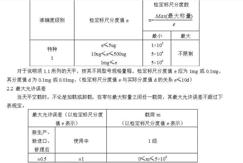 1.2 本規程參考G家技術監督局JJG98-90“非自動天平試行檢定規程”制定,用于自檢。 2 檢定項目和技術要求 2.1 檢定標尺分度值(e)